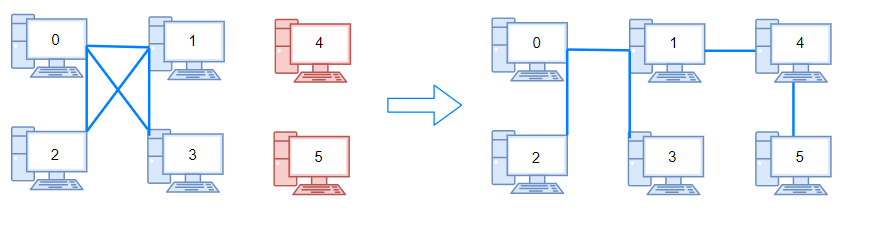 0부터 n번까지의 컴퓨터가 있고 각 컴퓨터간의 연결 관계를 나타내는 2차원 배열 connections가 주어질 때 모든 컴퓨터가 연결 되기 위해서 케이블을 옮기는 과정의 최소 횟수를 구하는 문제이다. 만약 모든 컴퓨터를 연결하는 것이 불가능하다면 -1를 return한다.