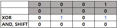 AND 연산을 수행했을 때 오른쪽에서 두 번째 비트만 모두 1이므로 0010이 되고 왼쪽으로 shift하여 0100이 된다.