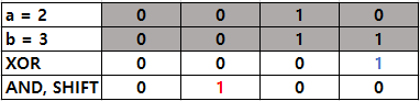 int carry =(a & b) << 1; // 올림수