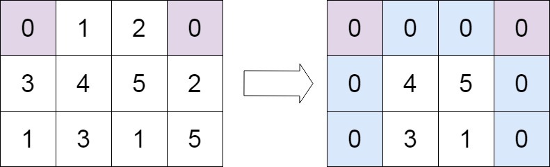 2차원 배열 matrix가 주어질 때 셀의 값이 0인 행과 열은 모두 0으로 치환해야하는 문제이다.