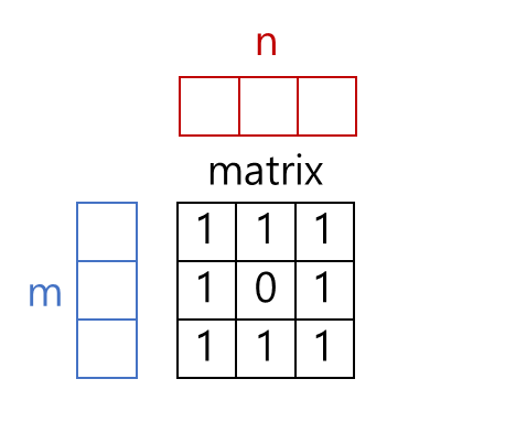 첫 번째 행을 n배열로 사용하고 첫 번째 열을 m배열로 사용한다. 다만 [0][0]번째 값은 행과 열에서 겹치므로 하나의 변수를 사용하여 행과 열중 하나를 판단하는데 사용한다.